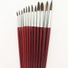 Round camel hair bristle with medium red handle and aluminum ferrule, size 1. Ideal for watercolor painting. Price per box of 12 brushes.